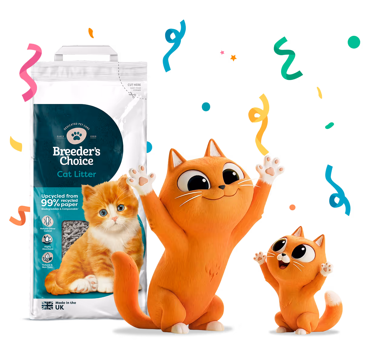 You might know us as Breeder Celect - good news, Breeder’s Choice is the same great paper cat litter - we just have a new name! Our award winning litter has been the go-to brand for kittens and cats who love a clean litter tray and a greener planet. It's still made right here in the UK and is as kind to your nose as it is to the Planet. Let Breeder’s Choice be your better choice. Choose Better. Choose Ginger.
